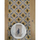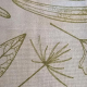 Hand-printed runner with line sketches of the leaves of 6 different indigenous plants found in the Limpopo valley.